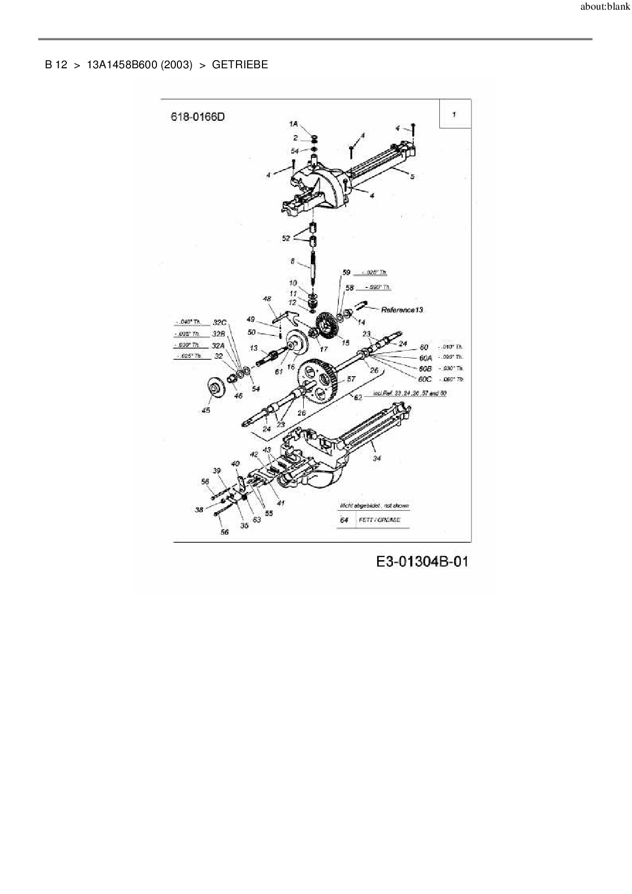 Ersatzteile für Rasentraktor MTD B 12 aus der Zeichnung Getriebe: