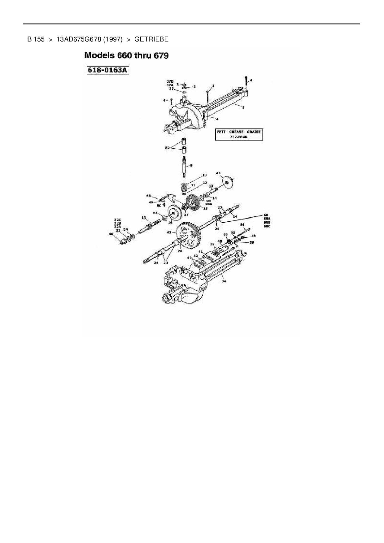 Ersatzteile für Rasentraktor MTD B 155 aus der Zeichnung Getriebe: