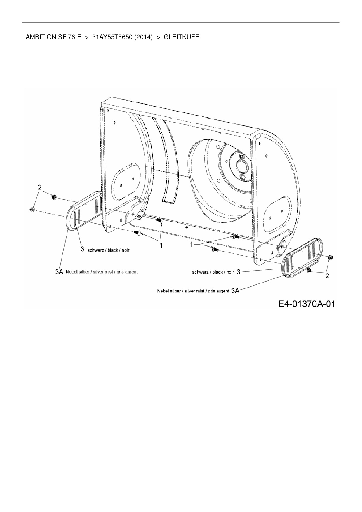 Ersatzteile für Schneefräse Wolf-Garten Ambition SF 76 E aus der Zeichnung Gleitkufe: