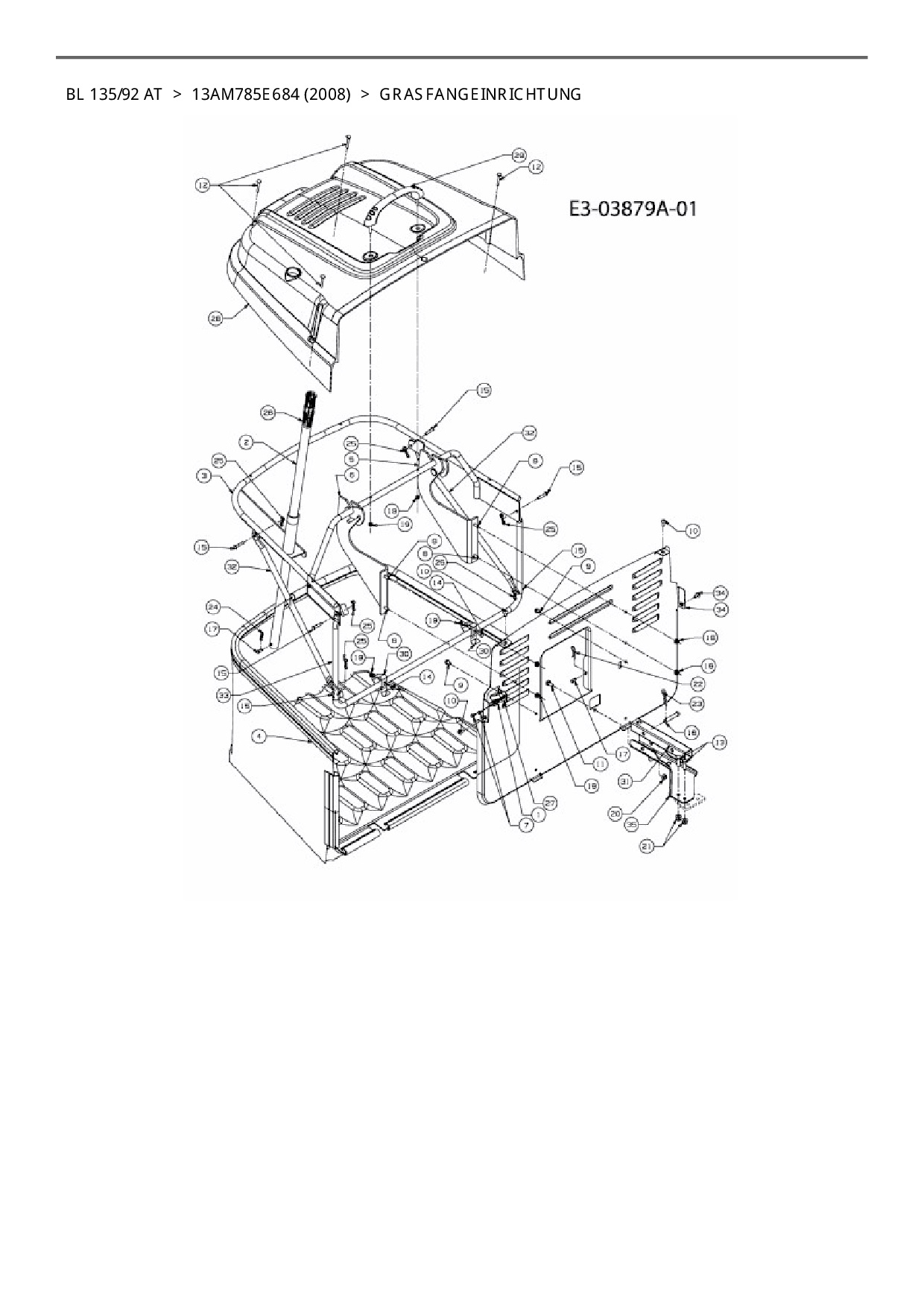 Ersatzteile für Rasentraktor Bolens BL 135/92 AT aus der Zeichnung Grasfangeinrichtung: