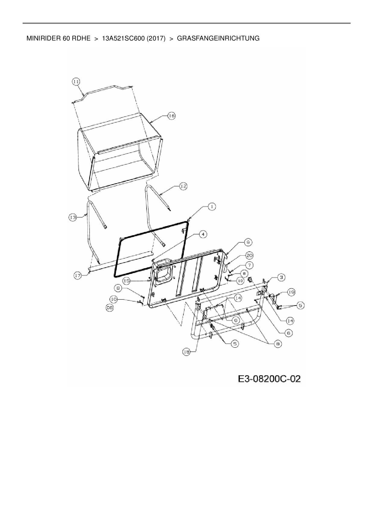 Ersatzteile für Rasentraktor MTD Minirider 60 RDHE aus der Zeichnung Grasfangeinrichtung: