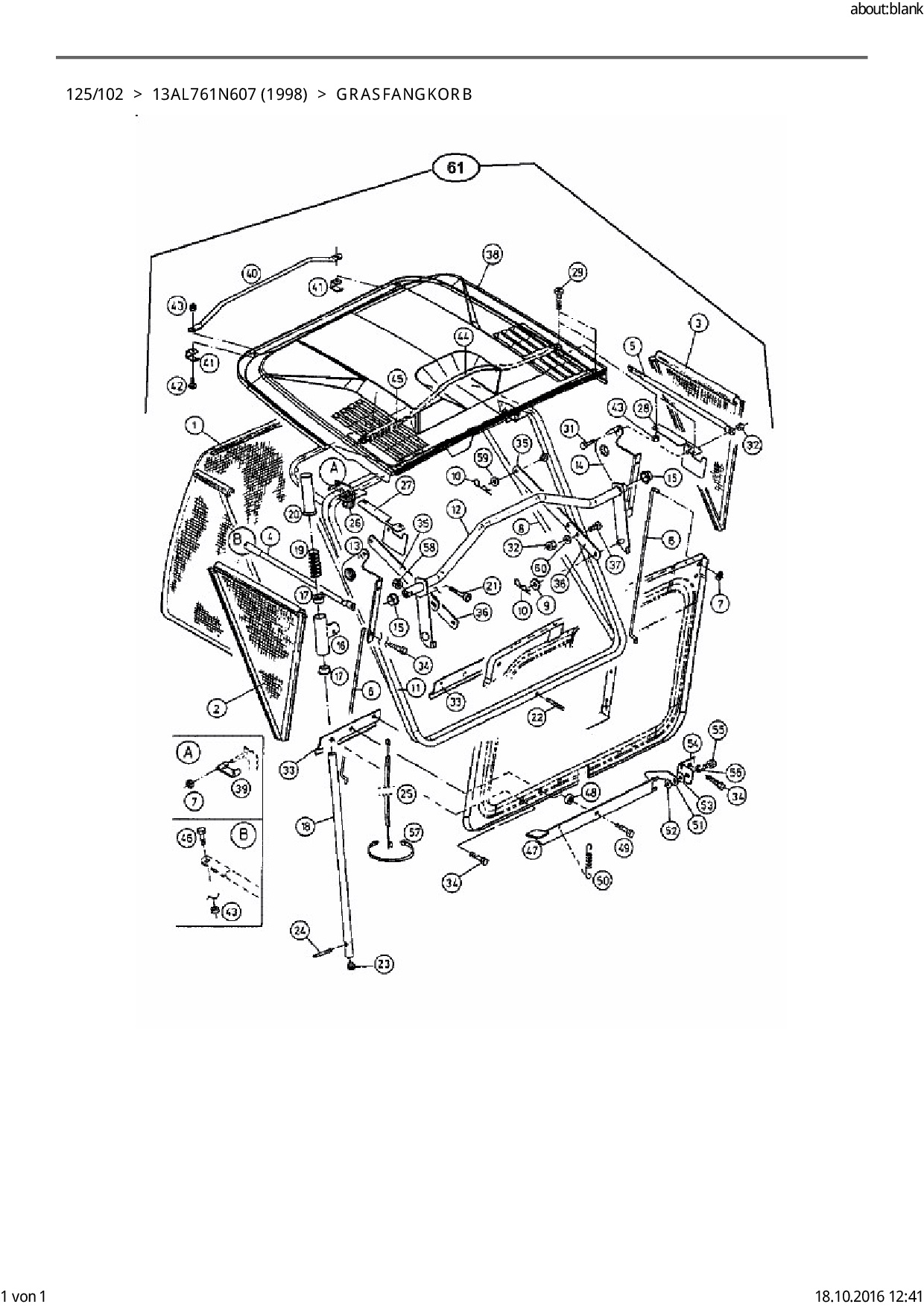 Ersatzteile für Rasentraktor Golf 125/102 aus der Zeichnung Grasfangkorb 1: