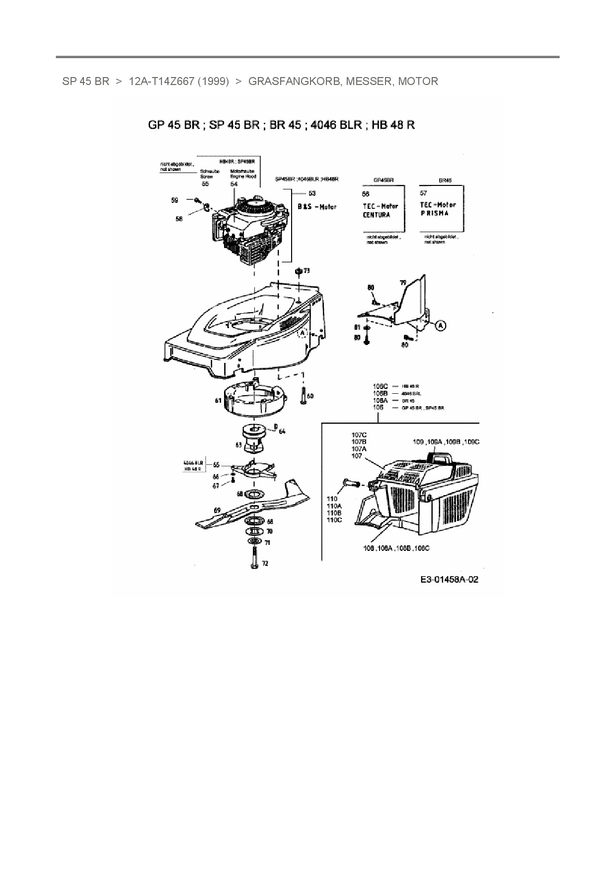 Download Ersatzteil-Zeichnung Stinnes Pro SP 45 BR Zeichnung Grasfangkorb, Messer, Motor (PDF-Format)