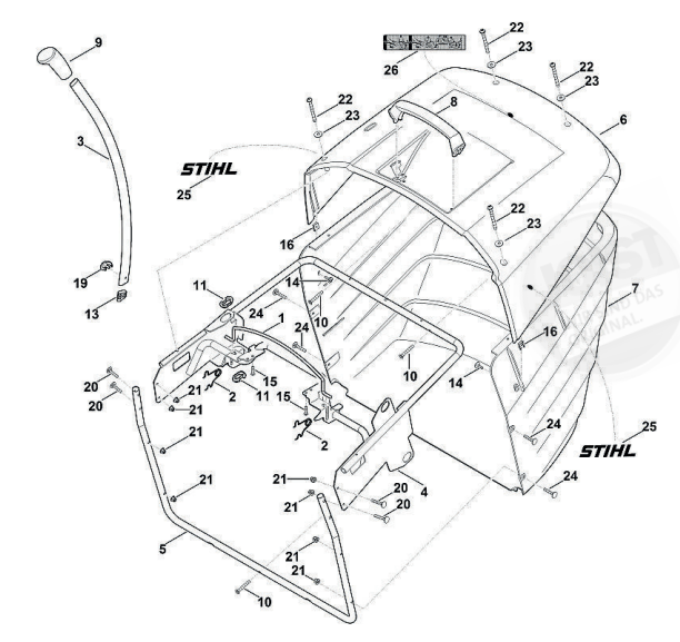 Hier finden Sie alle Ersatzteile von Stihl Aufsitzmäher RT 6112.0 ZL der Zeichnungsgruppe Grasfangkorb:
