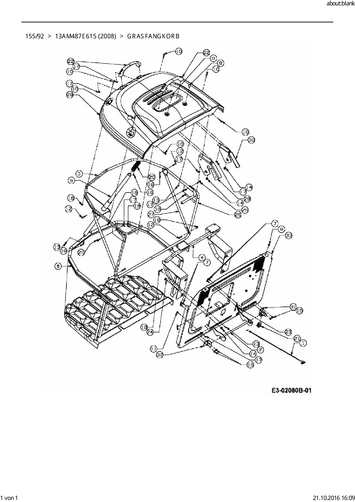 Ersatzteile für Rasentraktor Black Edition 155/92 aus der Zeichnung Grasfangkorb: