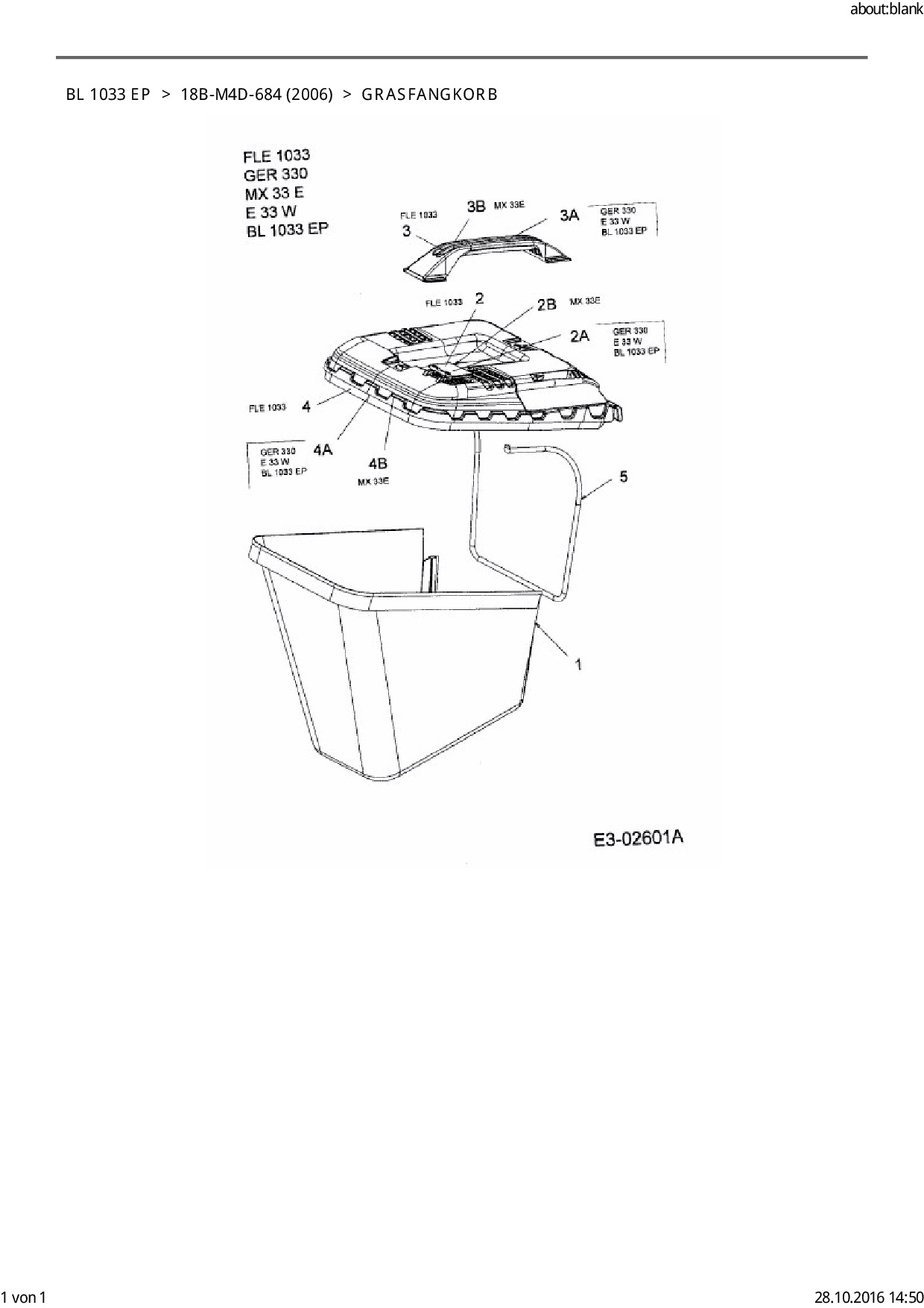 Ersatzteile für Elektromäher Bolens BL 1033 EP aus der Zeichnung Grasfangkorb: