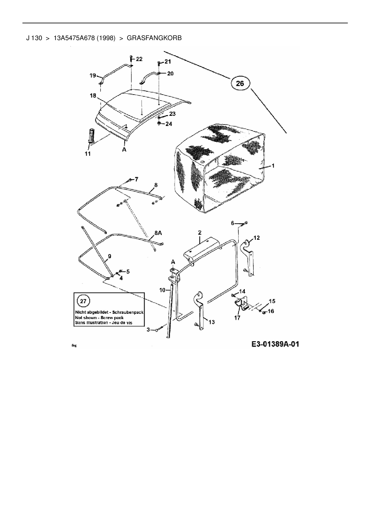 Download Ersatzteil-Zeichnung MTD J 130 Zeichnung Grasfangkorb (PDF-Format)