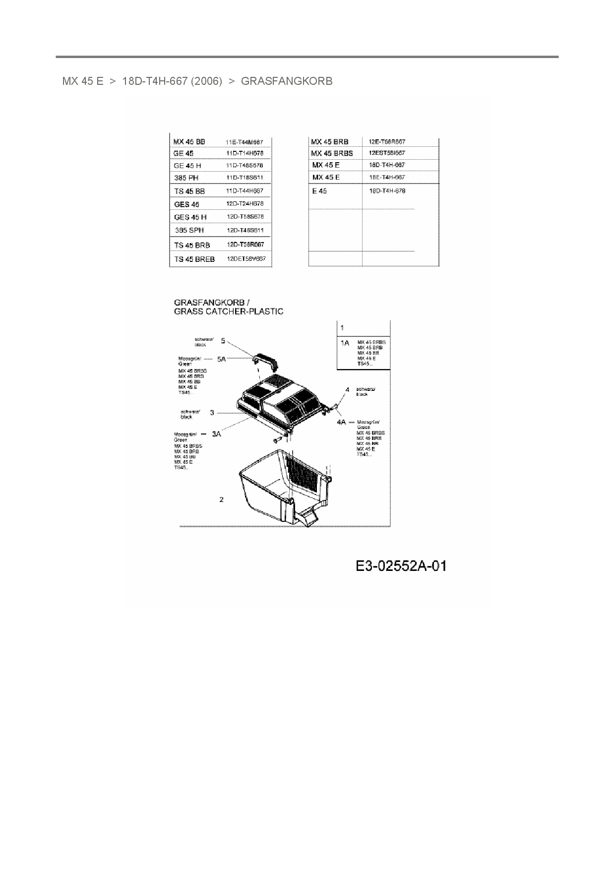 Ersatzteile für Elektromäher Merox MX 45 E aus der Zeichnung Grasfangkorb: