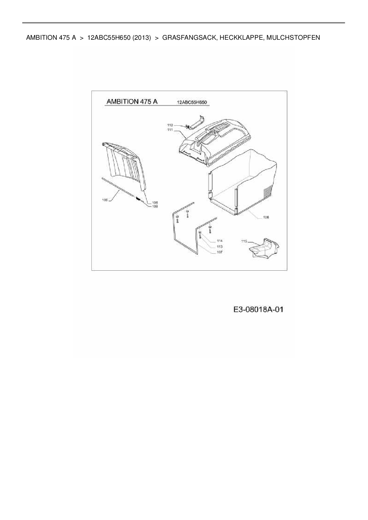 Ersatzteile für Motormäher mit Antrieb Wolf-Garten Ambition 475 A aus der Zeichnung Grasfangsack, Heckklappe, Mulchstopfen: