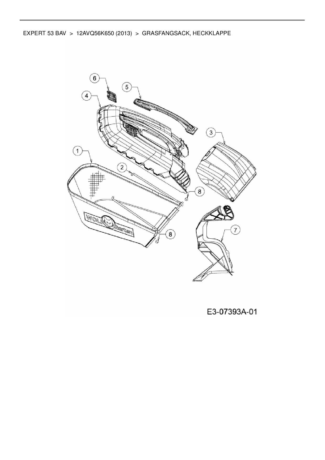 Ersatzteile für Motormäher mit Antrieb Wolf-Garten Expert Expert 53 BAV aus der Zeichnung Grasfangsack, Heckklappe: