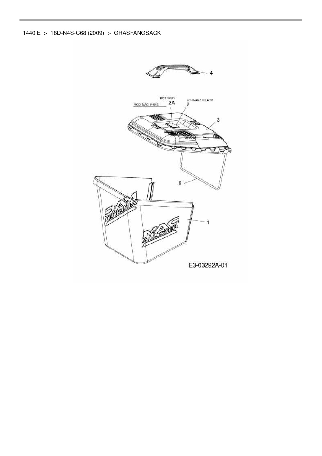 Ersatzteile für Elektromäher Mac Allister 1440 E aus der Zeichnung Grasfangsack: