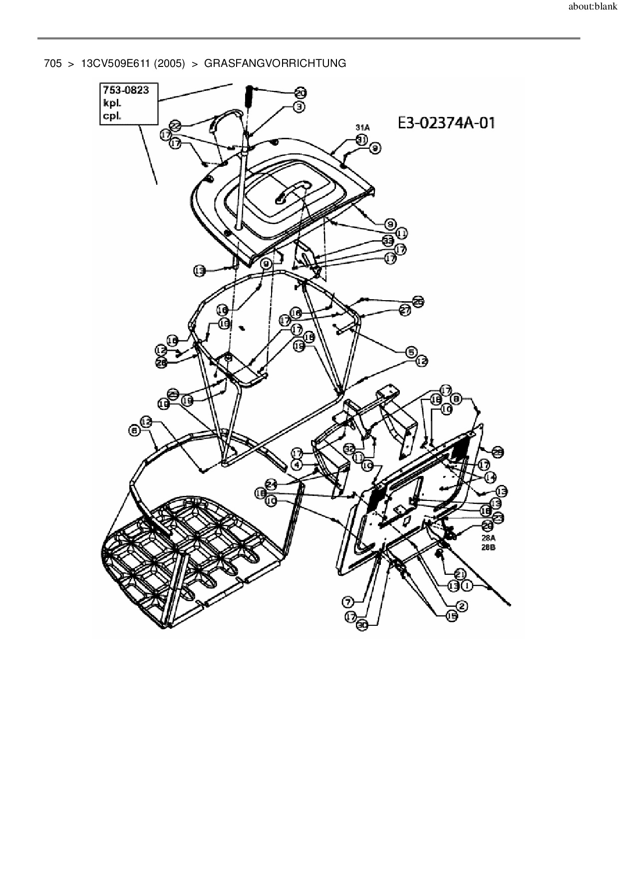 Ersatzteile für Rasentraktor Lawnflite 705 aus der Zeichnung Grasfangvorrichtung:
