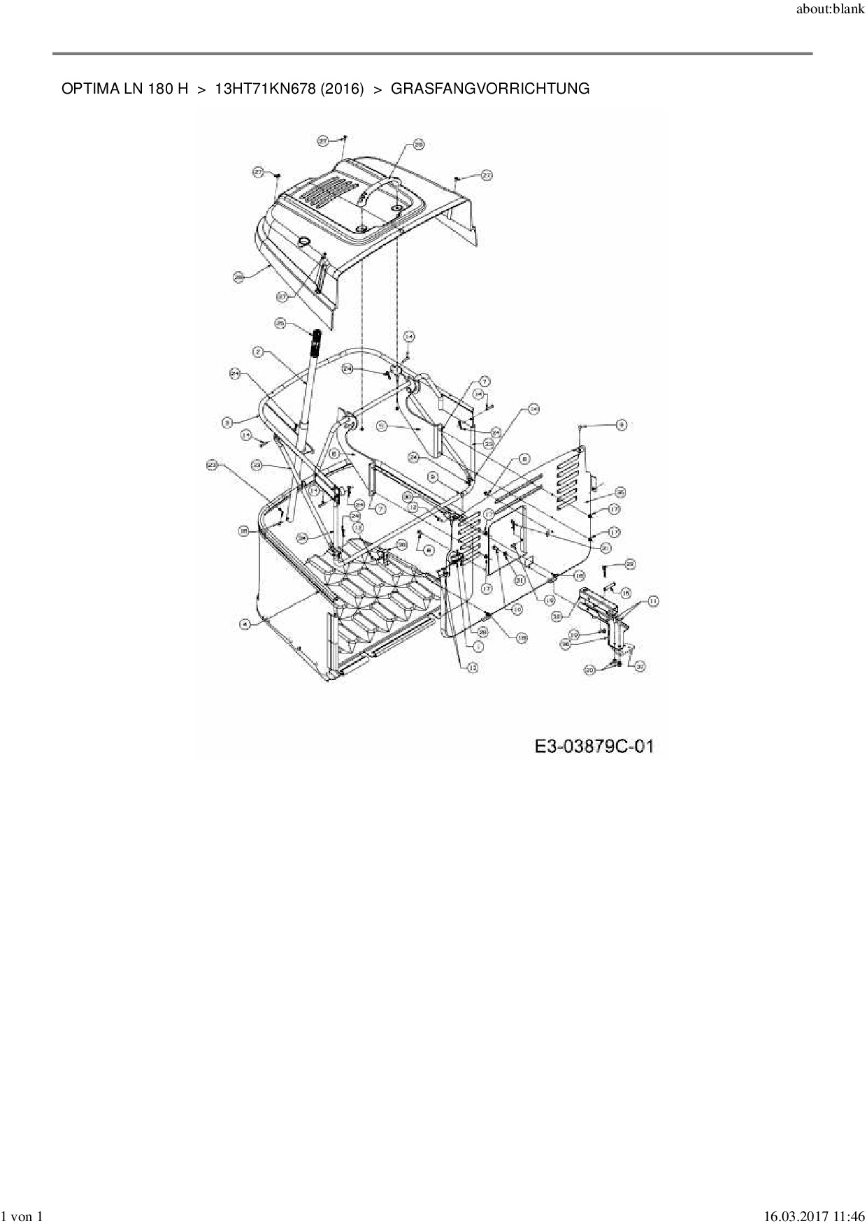 Ersatzteile für Rasentraktor MTD Optima LN 180 H aus der Zeichnung Grasfangvorrichtung: