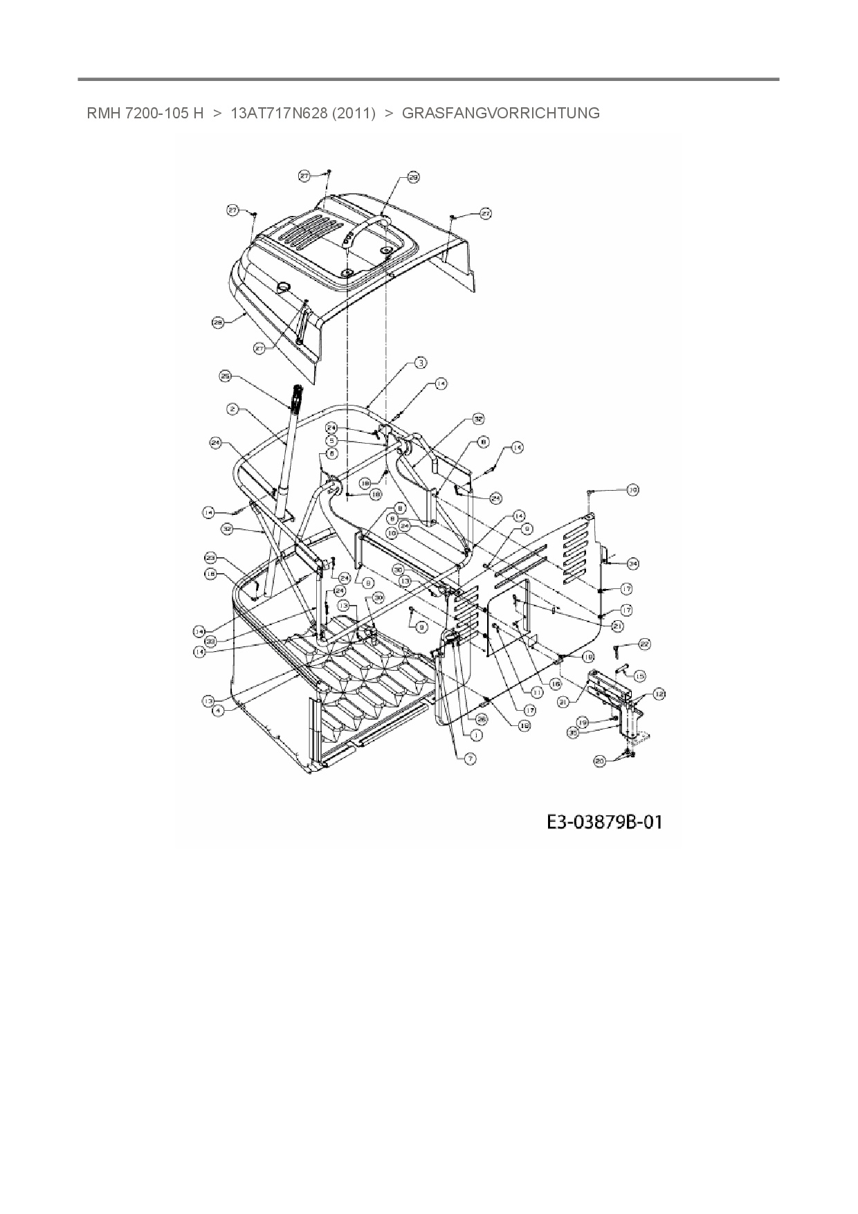 Ersatzteile für Rasentraktor Raiffeisen RMH 7200-105 H aus der Zeichnung Grasfangvorrichtung: