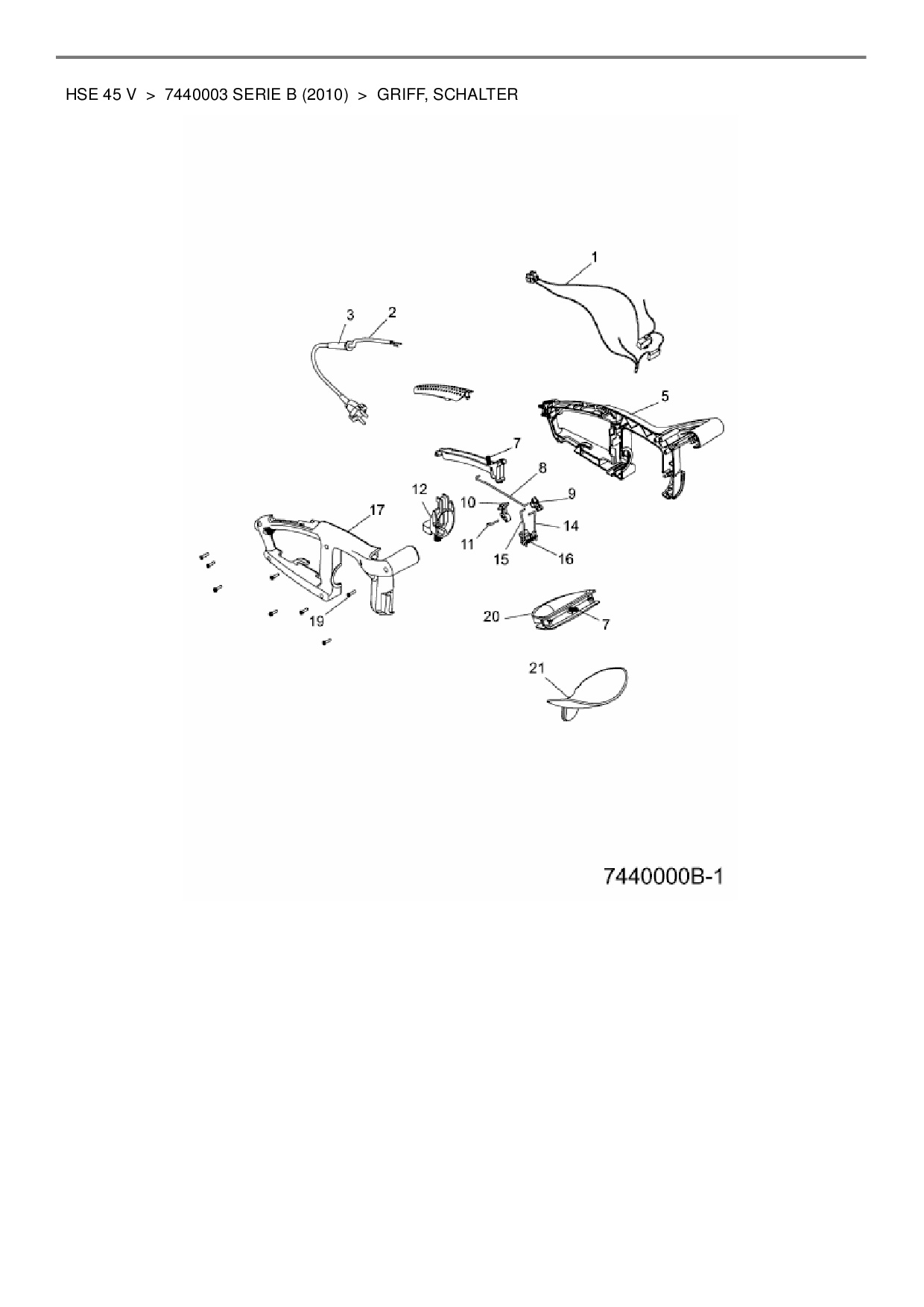 Ersatzteile für Elektroheckenschere Wolf-Garten HSE 45 V aus der Zeichnung Griff, Schalter: