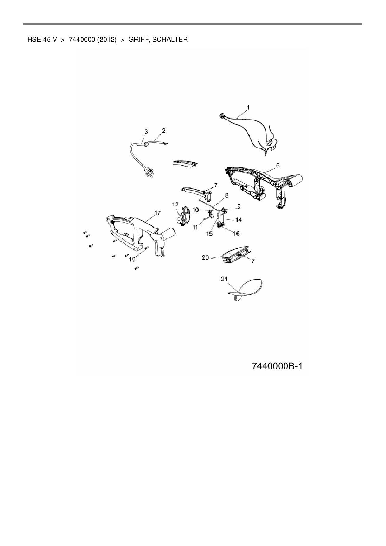 Ersatzteile für Elektroheckenschere Wolf-Garten HSE 45 V aus der Zeichnung Griff, Schalter: