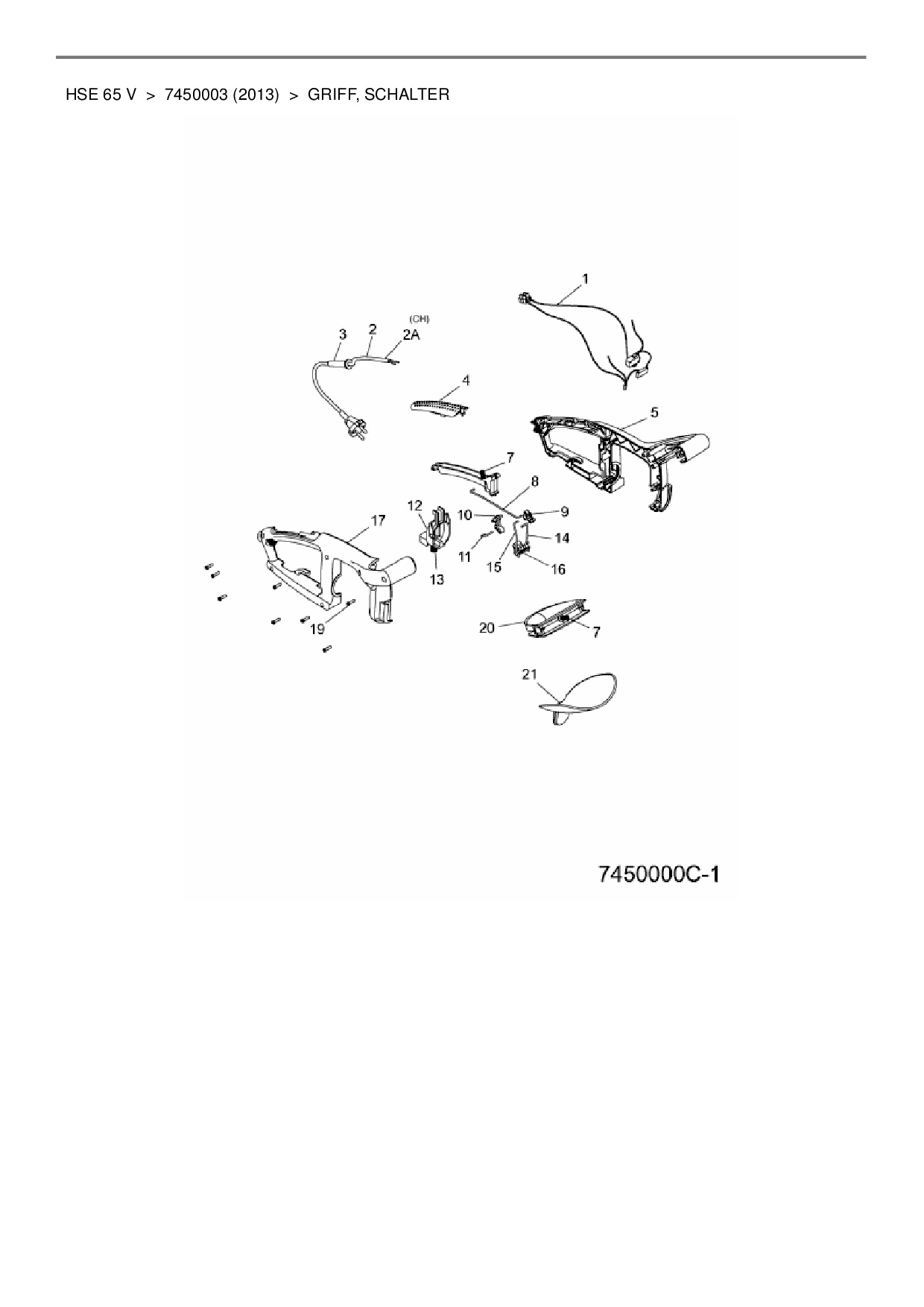Download Ersatzteil-Zeichnung Wolf-Garten HSE 65 V Zeichnung Griff, Schalter (PDF-Format)