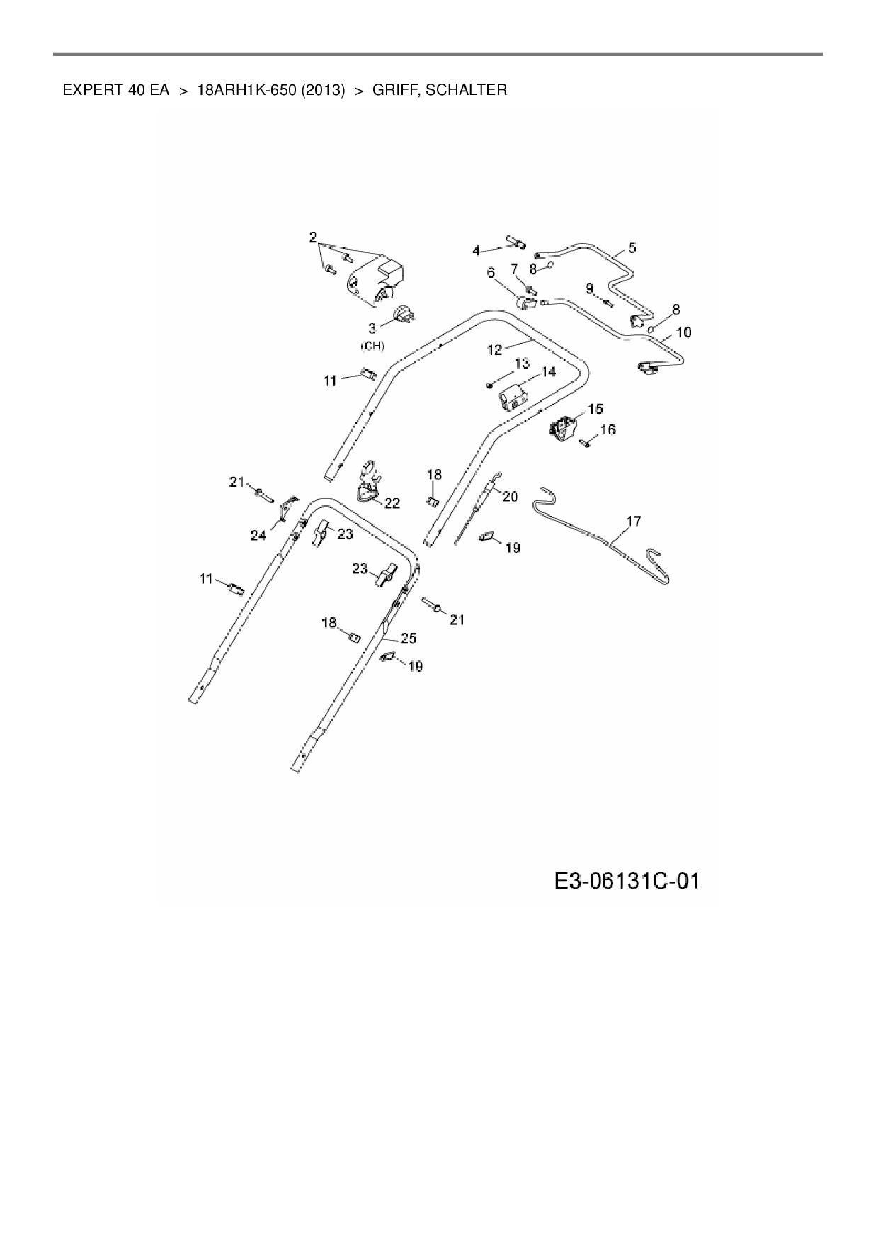 Download Ersatzteil-Zeichnung Wolf-Garten Expert Expert 40 EA Zeichnung Griff, Schalter (PDF-Format)