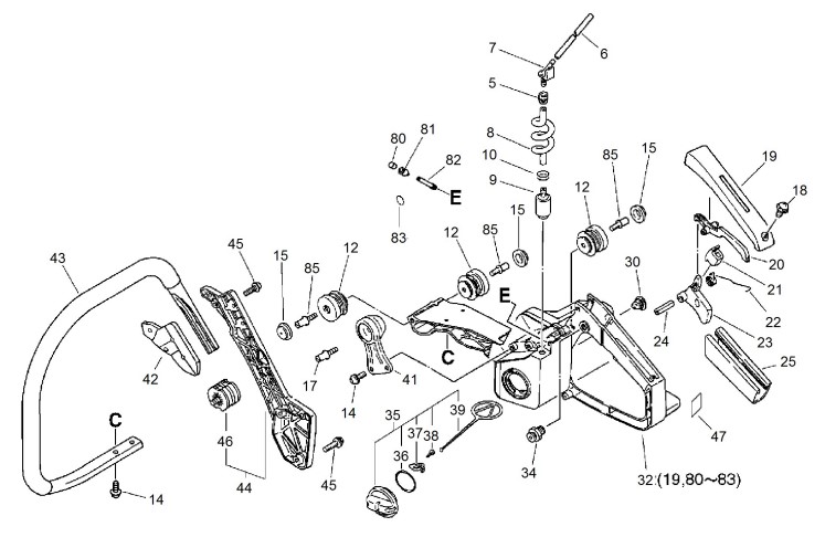 Hier finden Sie alle Ersatzteile von ECHO Motorsägen CS-6701 CS-6701 ohne Dekompressionsventil: