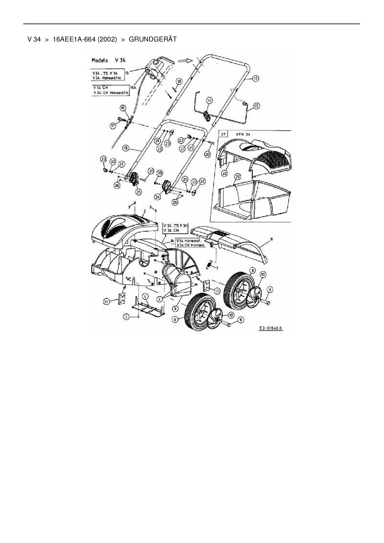 Zeichnung für Hanseatic Elektrovertikutierer V 34 mit der Geräte-Artikelnr. 16AEE1A-664 ab Baujahr 2002: