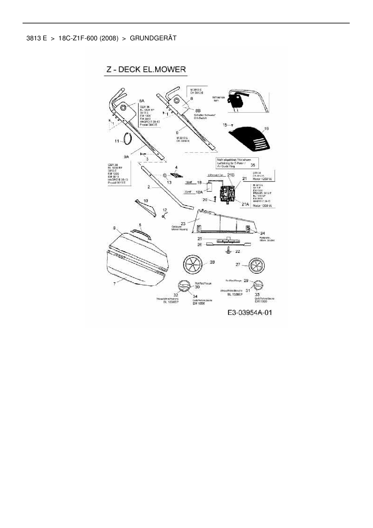Ersatzteile für Elektromäher MTD 3813 E aus der Zeichnung Grundgerät:
