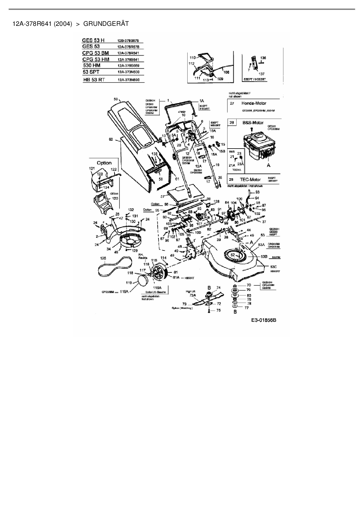 Ersatzteile für Motormäher mit Antrieb Central Park CPG 53 BM aus der Zeichnung Grundgerät: