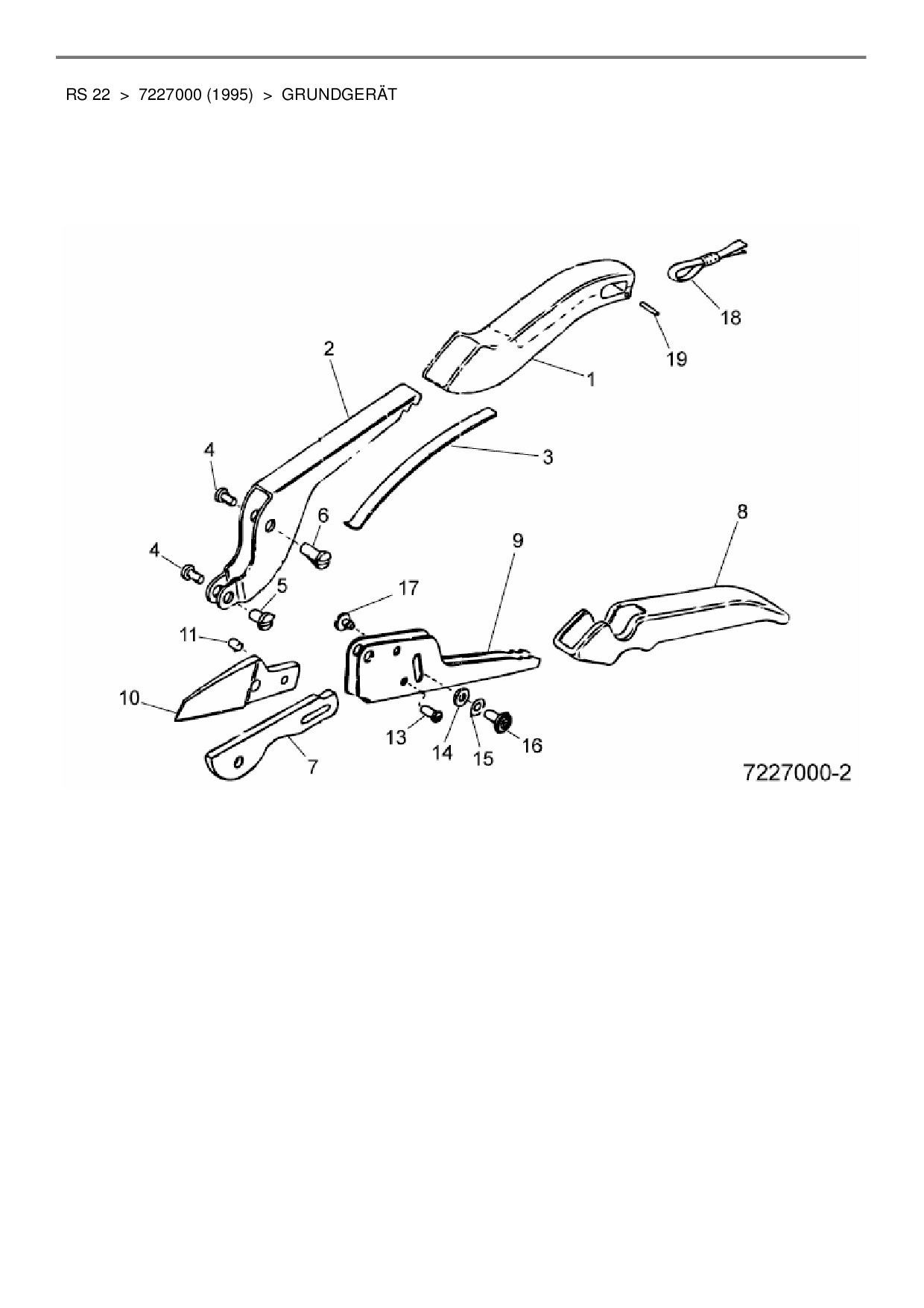 Zeichnung für Wolf-Garten Gartenschere RS 22 mit der Geräte-Artikelnr. 7227000 ab Baujahr 1995: