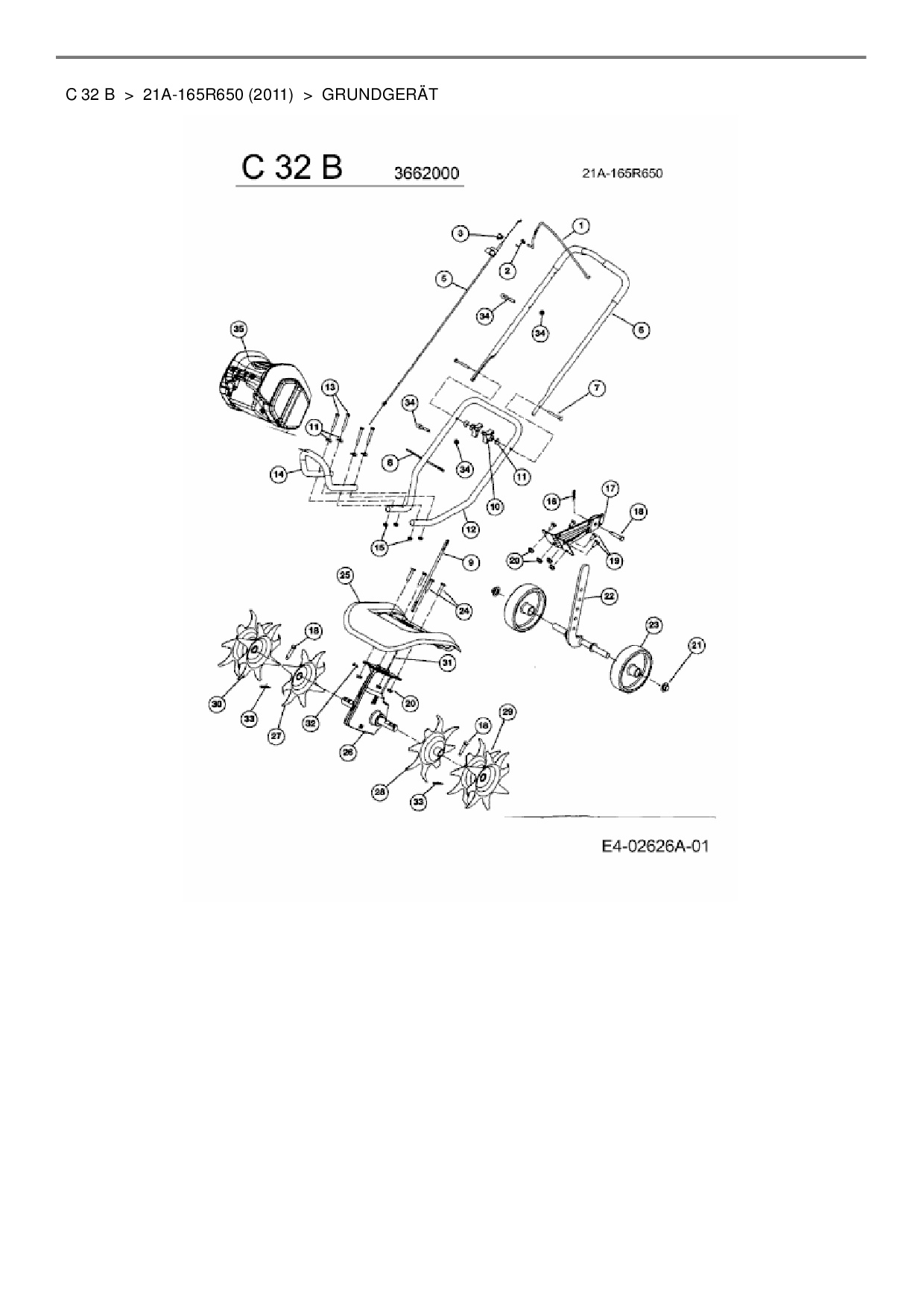 Ersatzteile für Motorhacke Wolf-Garten C 32 B aus der Zeichnung Grundgerät: