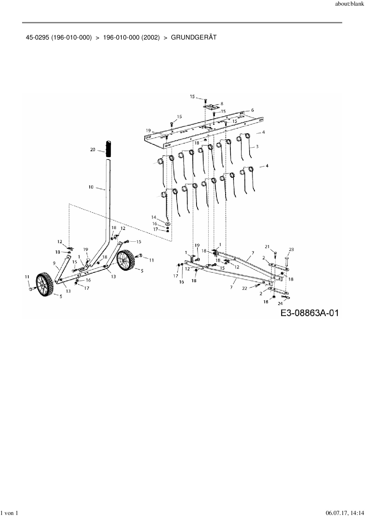 Ersatzteile für Rasenlüfter Zubehör Garten- und Rasentraktoren 45-0295 (196-010-000) aus der Zeichnung Grundgerät: