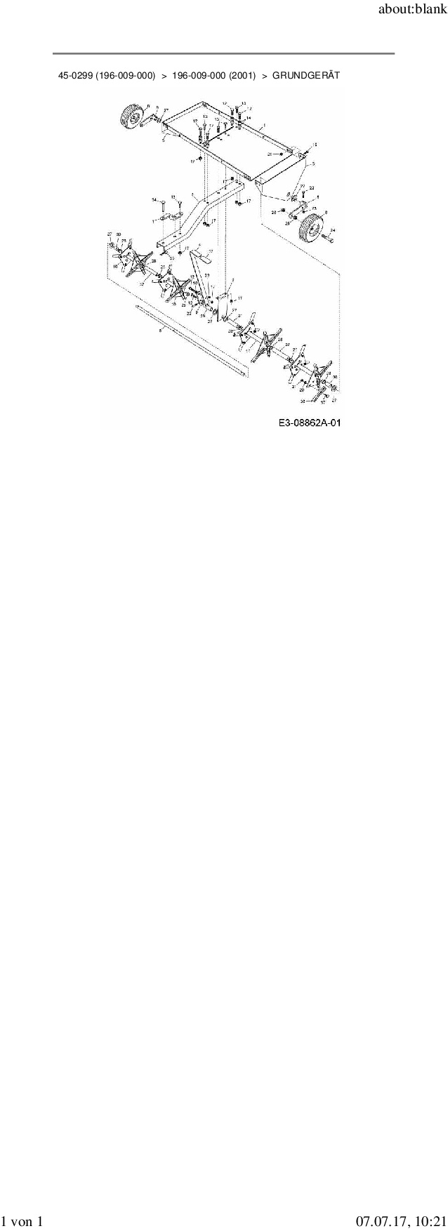 Die Ersatzteil-Zeichnung für Rasenlüfter Zubehör Garten- und Rasentraktoren 45-0299 (196-009-000) als Download: