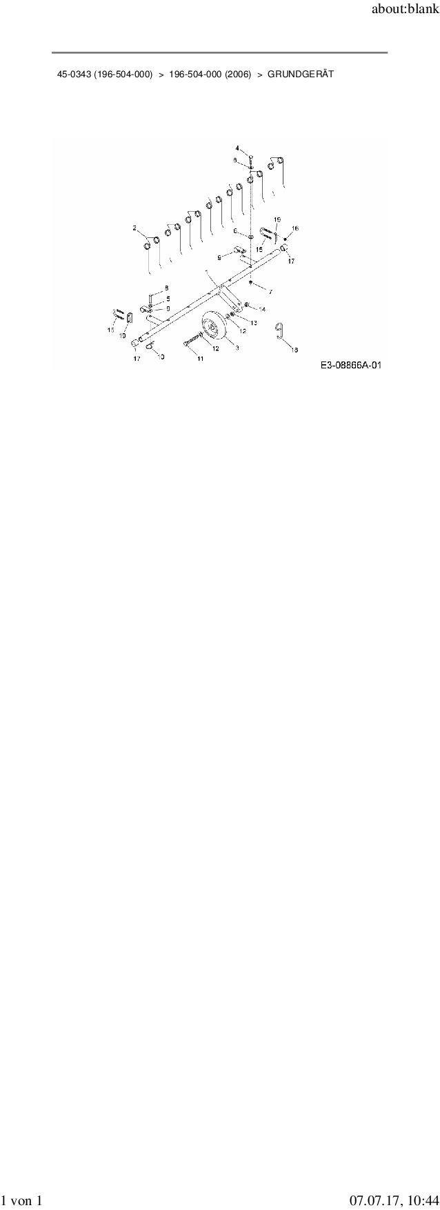 Die Ersatzteil-Zeichnung für Rasenlüfter Zubehör Garten- und Rasentraktoren 45-0343 (196-504-000) als Download: