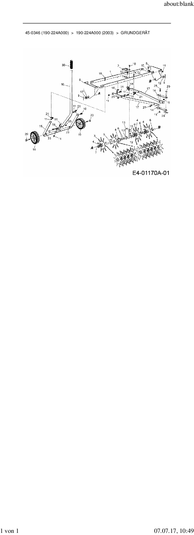 Die Ersatzteil-Zeichnung für Rasenlüfter Zubehör Garten- und Rasentraktoren 45-0346 (190-224A000) als Download: