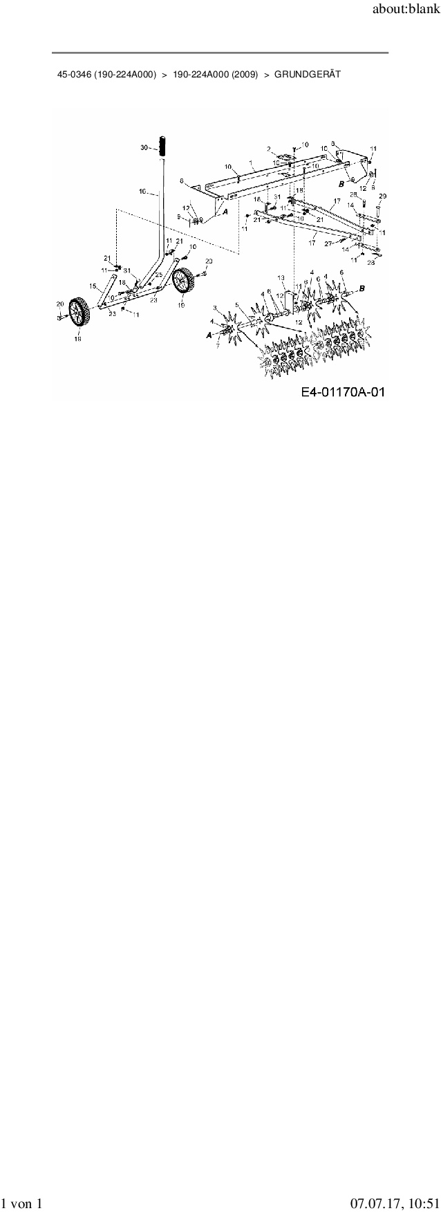 Die Ersatzteil-Zeichnung für Rasenlüfter Zubehör Garten- und Rasentraktoren 45-0346 (190-224A000) als Download: