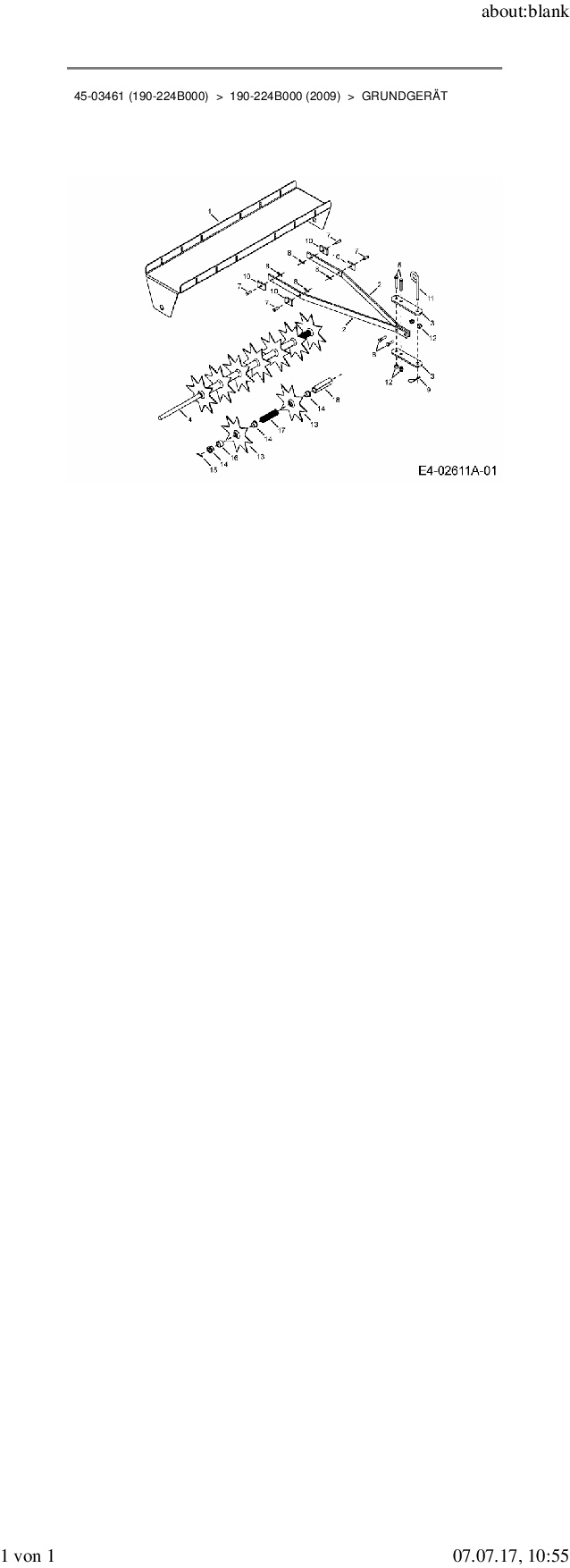Ersatzteile für Rasenlüfter Zubehör Garten- und Rasentraktoren 45-03461 (190-224B000) aus der Zeichnung Grundgerät: