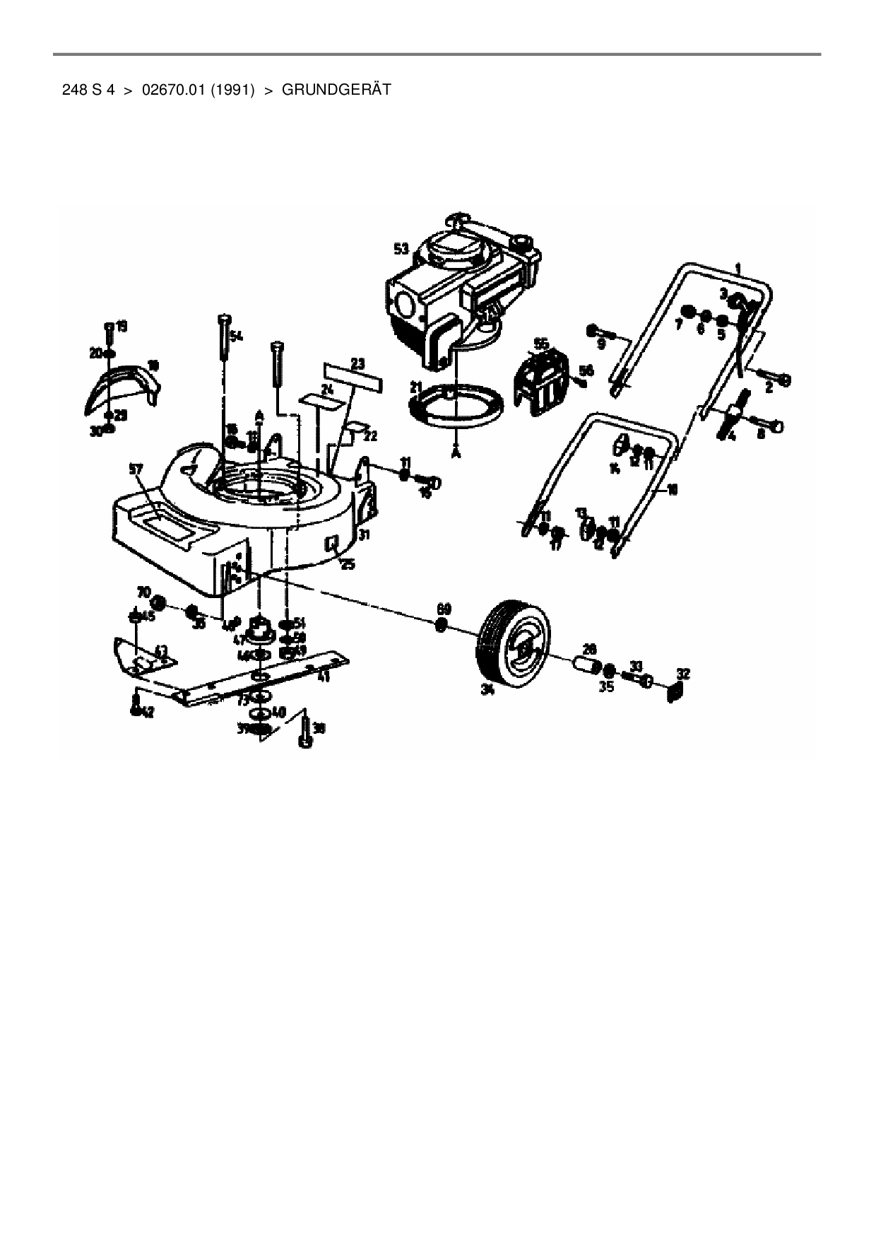 Ersatzteile für Motormäher Golf 248 S 4 aus der Zeichnung Grundgerät: