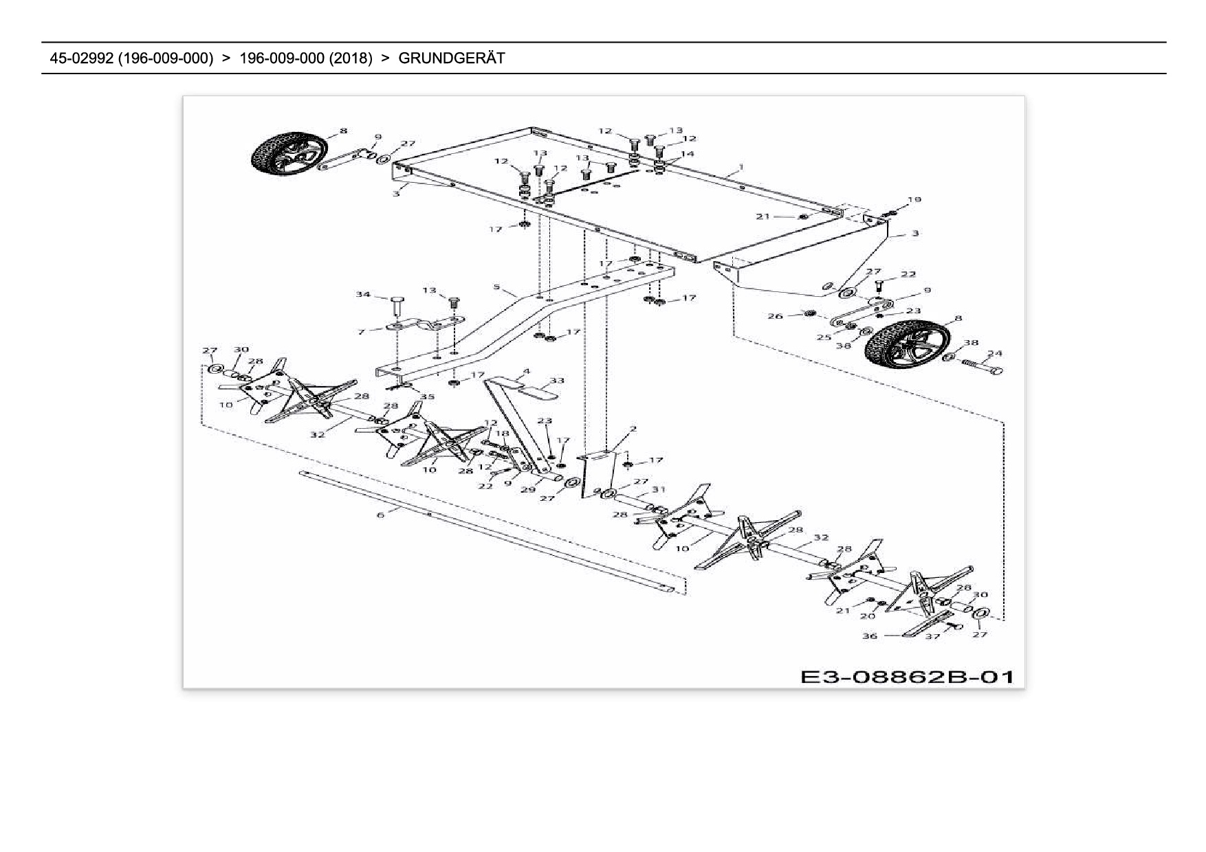Download Ersatzteil-Zeichnung ZUBEHÖR GARTEN- UND RASENTRAKTOREN 45-02992 (196-009-000) Zeichnung Grundgerät (PDF-Format)