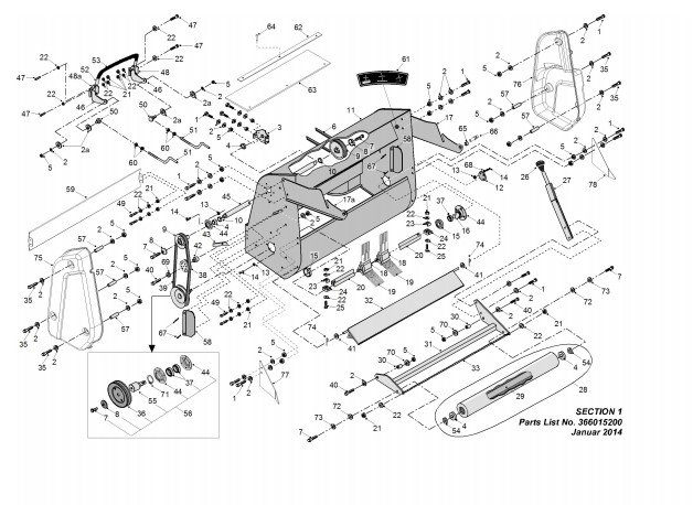 Zeichnung von ECHO-Motorgeräte Rasentraktoren A-Serie A-426KAWA-4WD - E1100105 Grundkörper KM-5004, Ansicht von hinten: