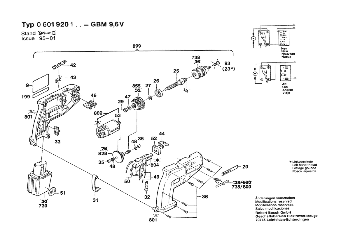 Zeichnung Sollten Sie Fragen zu einem Ersatzteil vom Bosch Gw-Akku-Bohrmaschine GBM 9,6 VRL | 9.6 V | 036 - GB (0 601 920 142) haben, können Sie uns gerne eine E-Mail (mit einem Foto vom Typenschild Ihres Gerätes) schreiben oder eine Ersatzteilanfrage stellen.