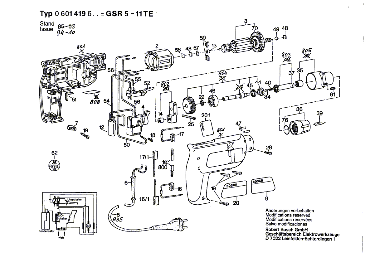 Zeichnungen von Bosch Gw-Bohrschrauber GSR 5-11 TE mit der Geräte-Artikelnummer 0 601 419 603