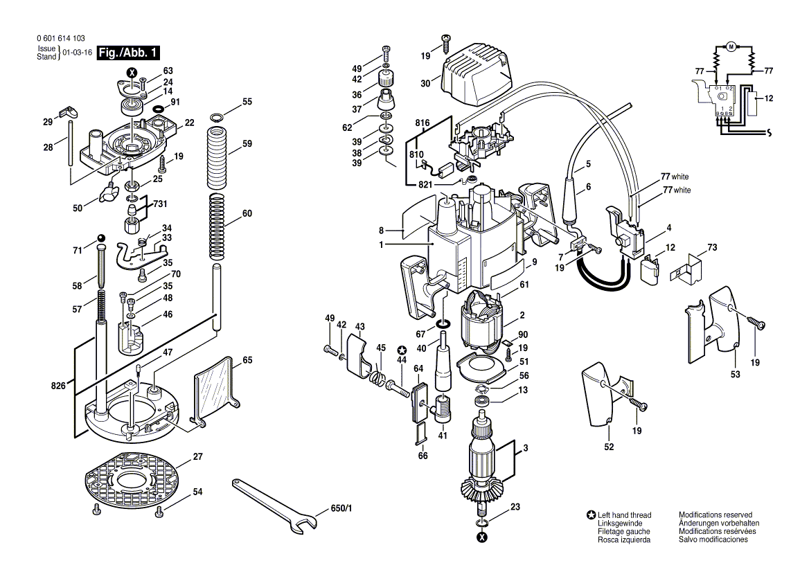Zeichnungen von Bosch Gw-Oberfräse GOF 900 mit der Geräte-Artikelnummer 0 601 614 103