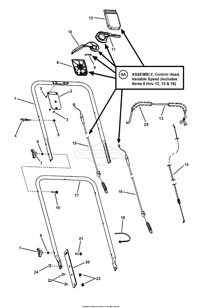 Zeichnung Snapper 7800127 - ESPV211, 21" 6.5GT Steel Deck Easy Line Euro Walk Mower - Zeichnung HANDLES & CONTROLS: