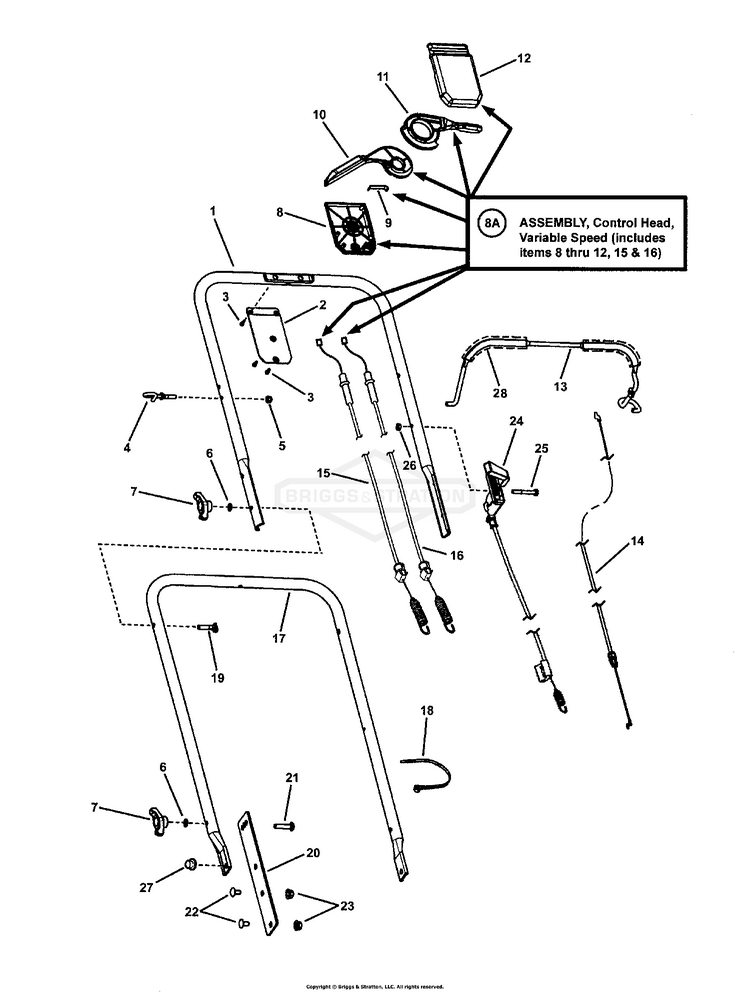 Zeichnung Snapper 7800252 - ESPV21S, 21" 6.5GT Steel Deck Swivel Wheel Easy Line Euro Walk Mower - Zeichnung HANDLES & CONTROLS: