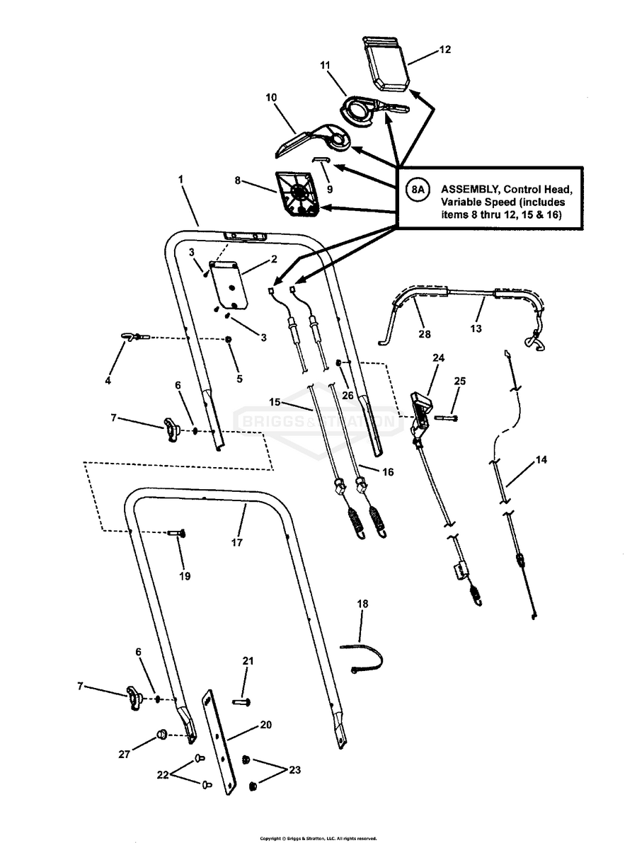 Hier finden Sie alle Ersatzteile von Snapper 7800730 - ERPV21675SW, 21" 6.75GT Steel Deck Swivel Wheel Easy Line Euro Walk Mower der Zeichnungsgruppe HANDLES & CONTROLS: