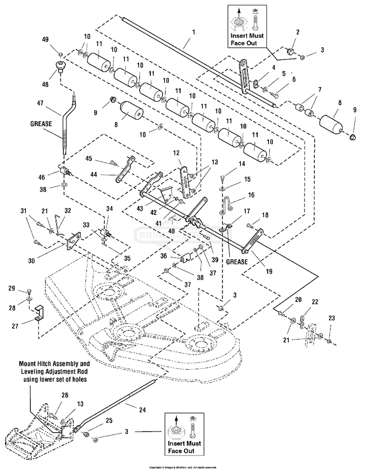 Hier finden Sie alle Ersatzteile von Snapper 2690108 - YT1844, 44" 18 HP Hydro Drive Yard Tractor der Zeichnungsgruppe HEIGHT ADJ & ROLLER GRP-44":