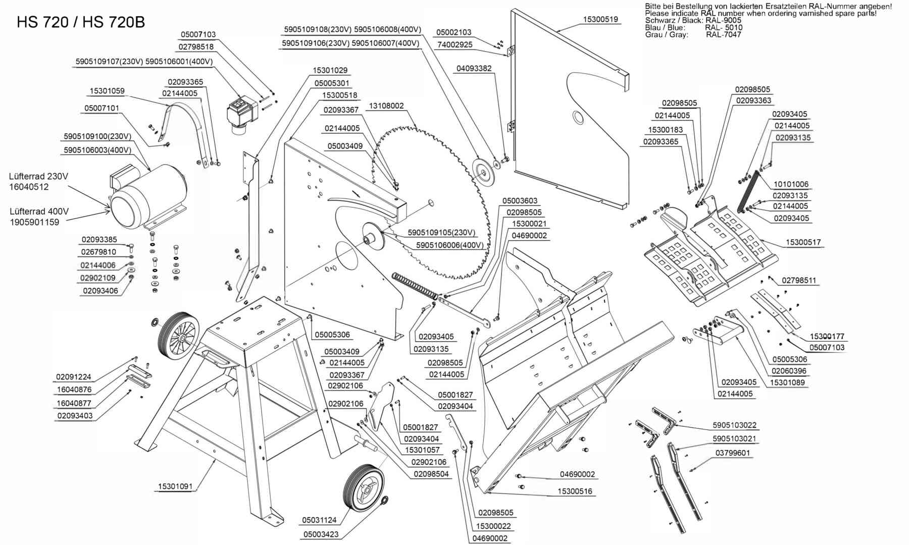 Ersatzteile für Scheppach Wippkreissäge HS720B (Gerätenr. 5905109903) - HS720 / HS720B ab 1/2019
