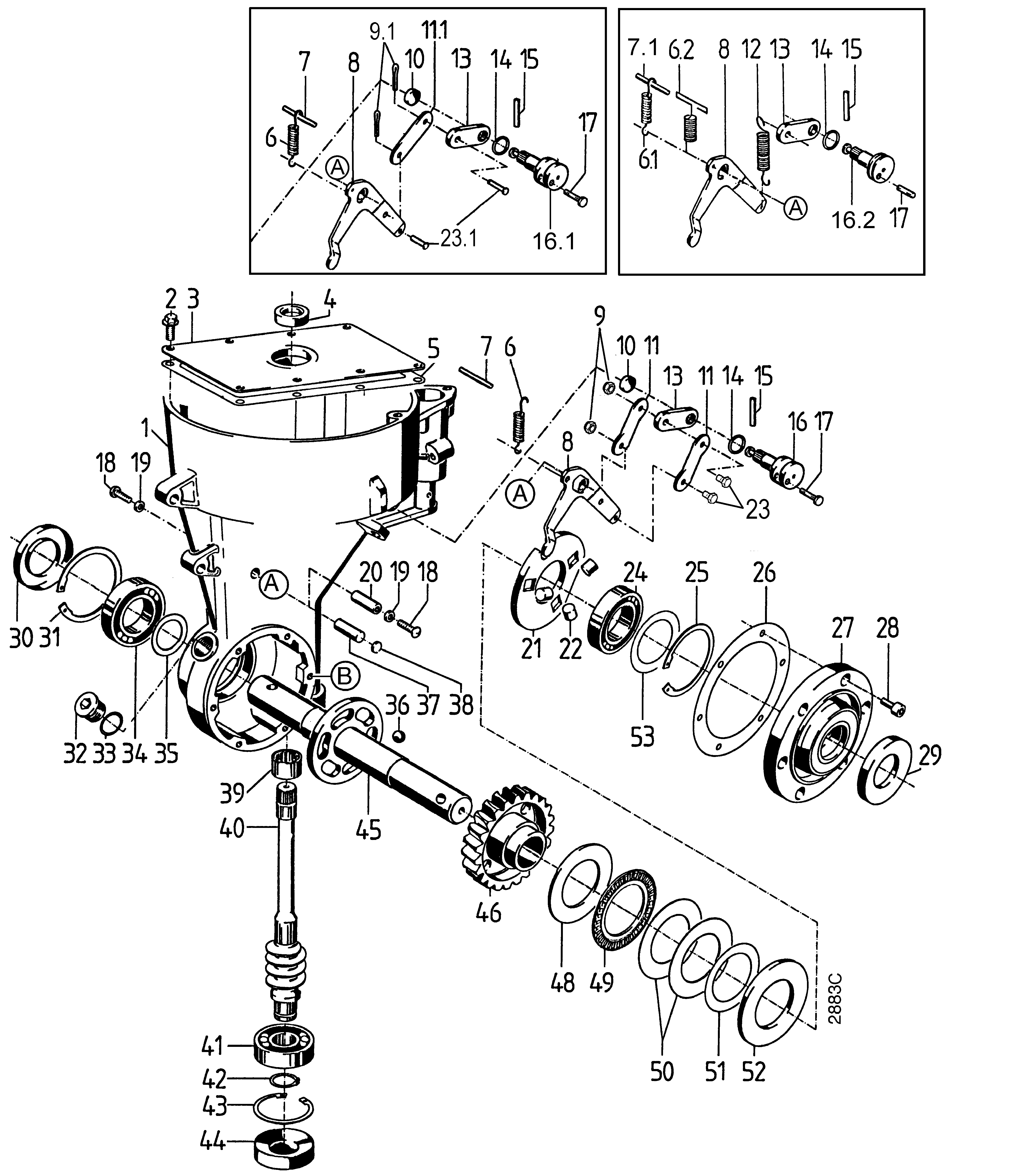 Ersatzteile für Agria # Motorhacken # agria 1000 # Art-Nr 1000511 | agria 1000 45cm 4T 3,2kW # Getriebe # Hackgetriebe | 1000-4, 1000-5, 1000 Pos. 9.1 und 9.1a sowie 23.1 auf Ausf. 9 und 23 ändern!