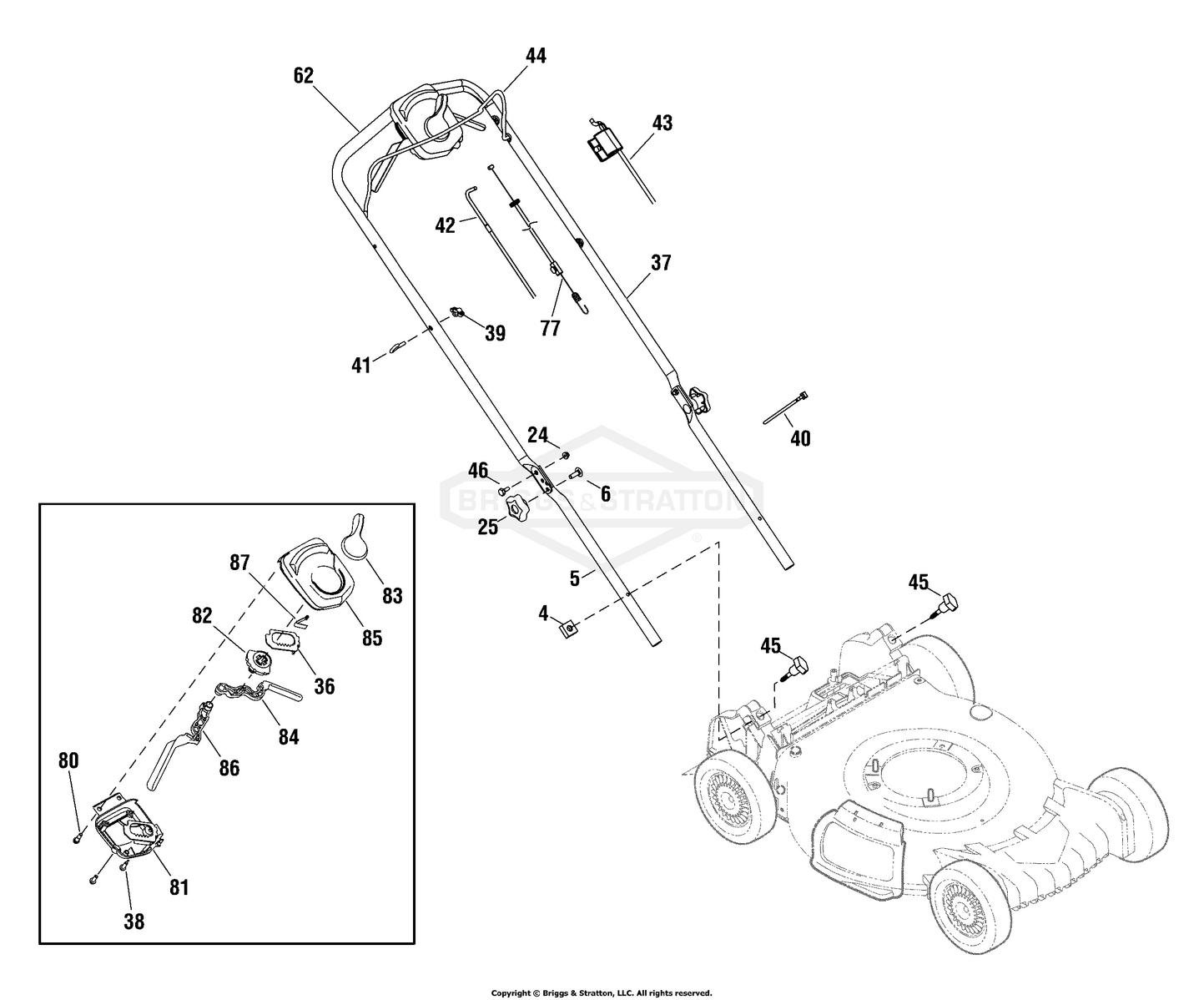 Hier finden Sie alle Ersatzteile von Snapper 7800956-00 - SP105, 21" 775 Series Self Propelled Electric Start Walk Behind Mower der Zeichnungsgruppe Handle Group: