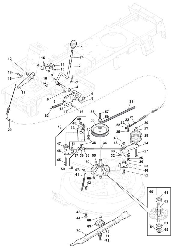 Hier finden Sie alle Ersatzteile von Mountfield Aufsitzmäher R27M (Geräte Nr 2T0042486/SF) ab 2015 aus der Zeichnung Hebelschaltung der Messer (1):