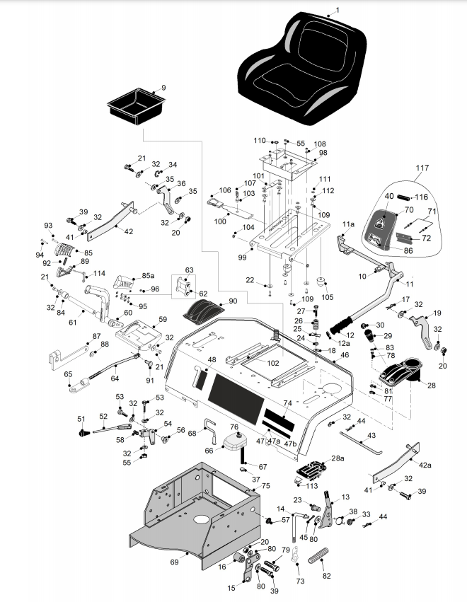 Zeichnung von Westwood S & T-Serie 2WD ab BJ. 2011 Heck, Sitz bei manueller Aushebung 2WD ab Bj. 2011: