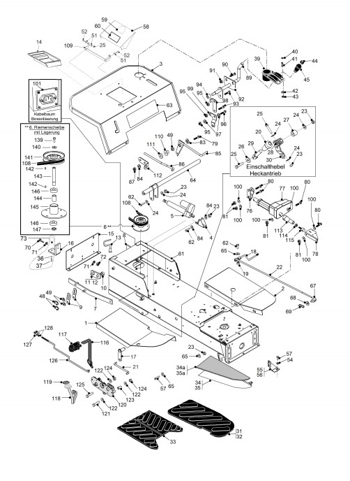 Zeichnung von ECHO-Motorgeräte Rasentraktoren PARK-Serie PARK-220HO Bj. 2004 Heck, elektrische Mähwerksaushebung: